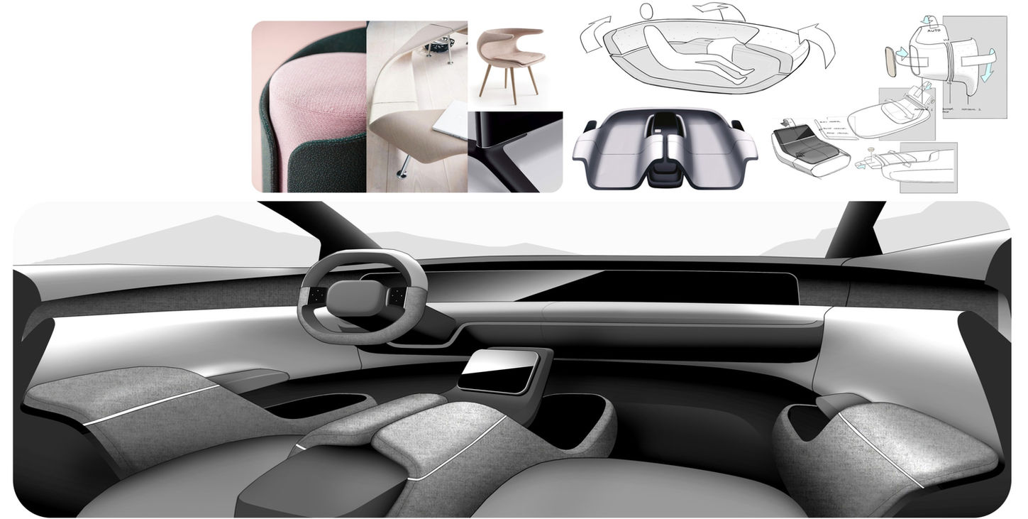 This project looks to explore the challenges of integrating new technologies into an automotive interior. How can these elements interact with each other to create a cohesive space?